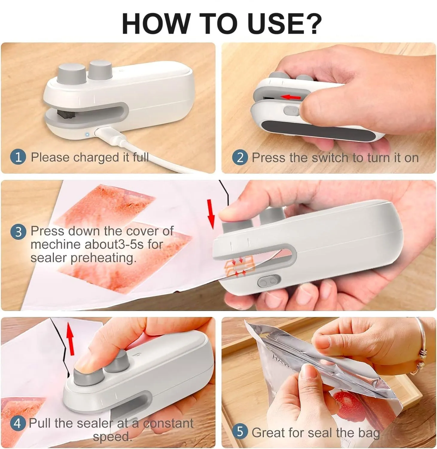 Portable Rechargeable Mini Sealer For Plastic Bags | Handheld Heat Sealing Machine